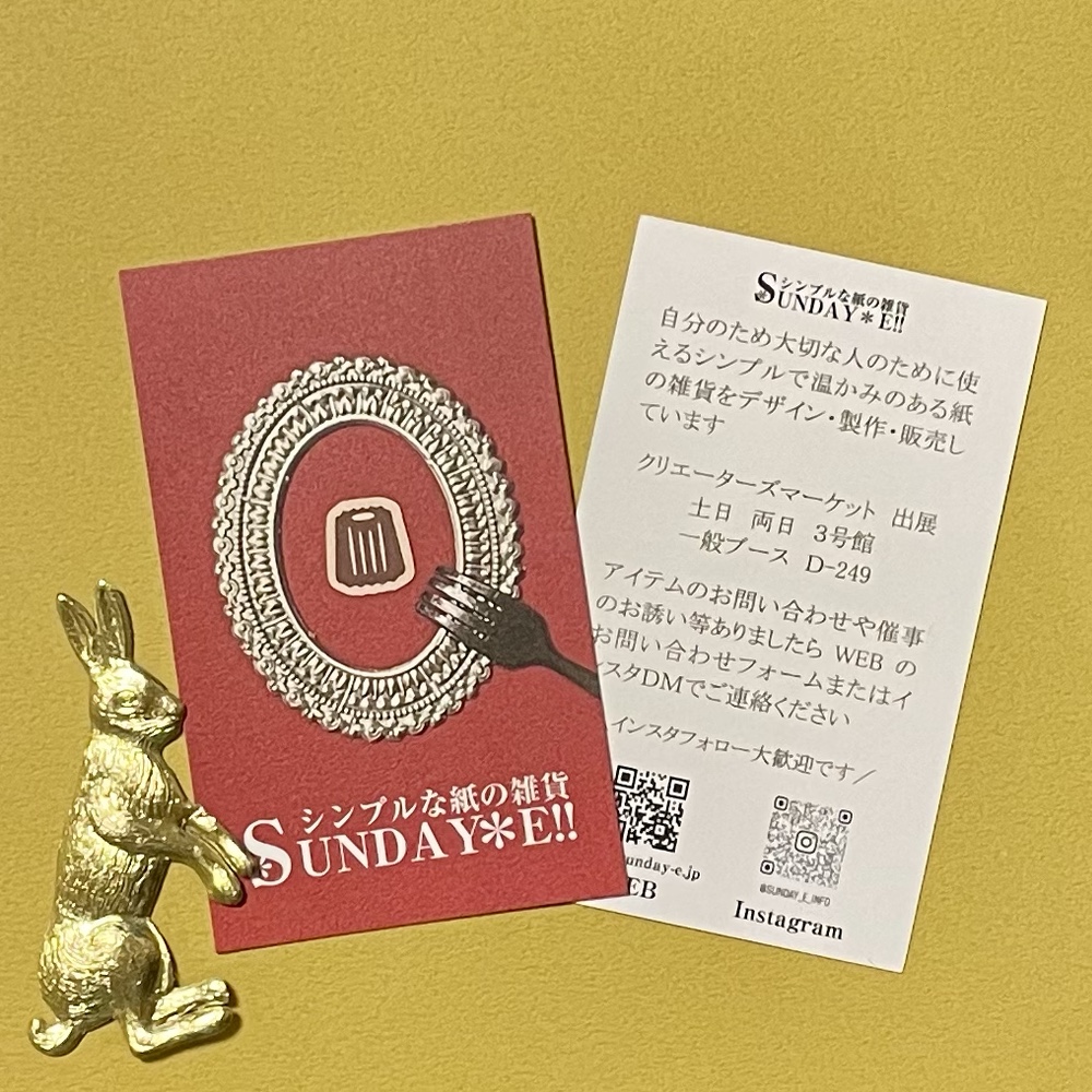 イベント イベント準備 2023-11-18 / クリエーターズマーケットまでもう1か月を切ったので少しづつ準備しています。今回の写真は出展中にブースへ寄った方へ配布するshopカードです。私はこういったイベントで買い物する時に一度見て、気になったらまた行ってみるという感じなのですが、クリマは広い会場が二つありますので再度行くというのは結構難しかったりします。そんな時にブース番号を書いたカードをお渡しておいたら再度来てもらいやすいかなと思いこの文面にしています。もちろん、ご自由にお持ちいただいても大丈夫です。