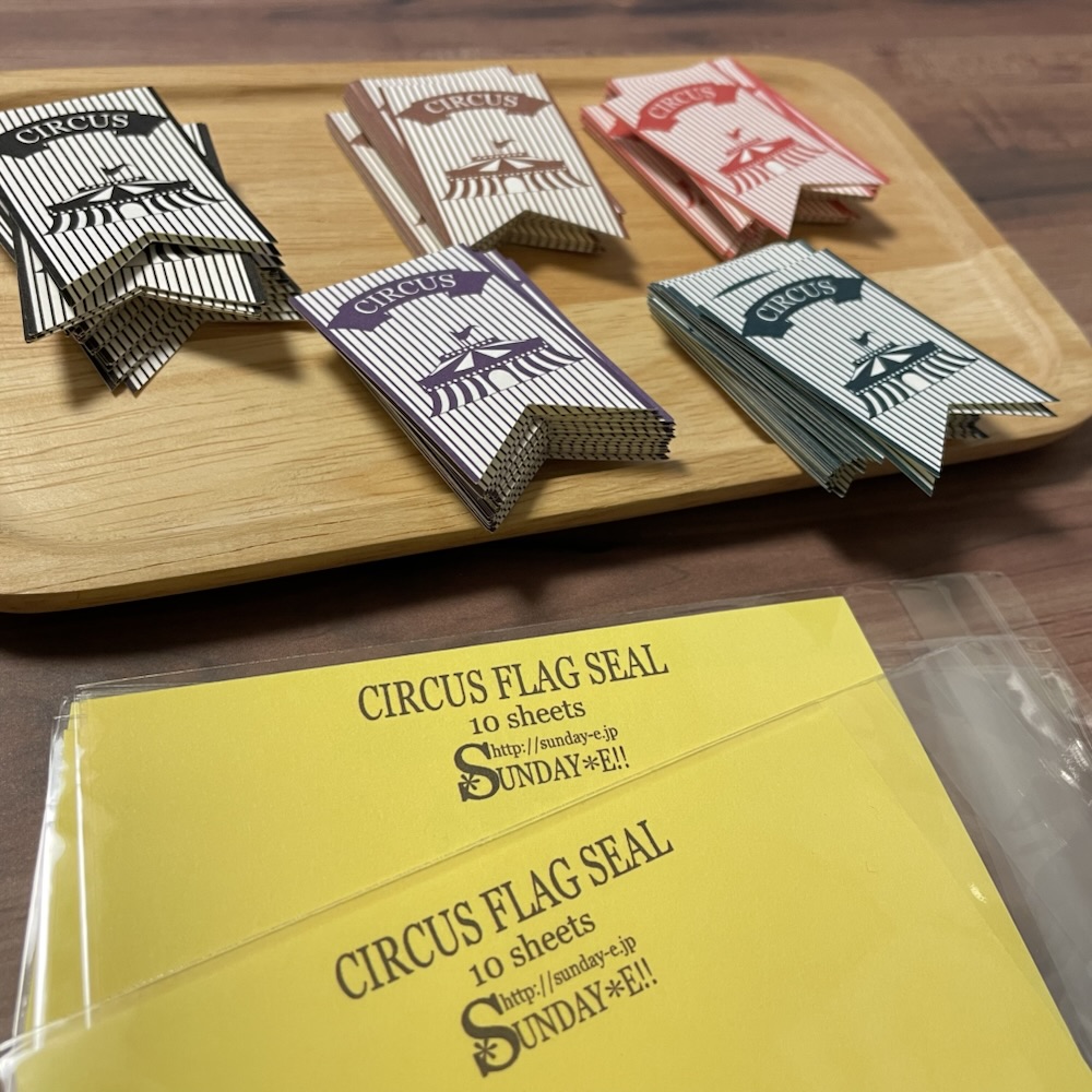 制作中の話 シール制作 2026-02-16 / 昨日新作の入稿をしたので、印刷物が届くまでは在庫が少なくなっているアイテムを中心に制作しています。 サーカス旗シールを袋詰めしているところです。 ピンセットを使って色ごとに台紙に並べていきます。 縦長のシールはイベントでは結構人気だったのもあってちょっと種類を増やそうかなと考えています💭