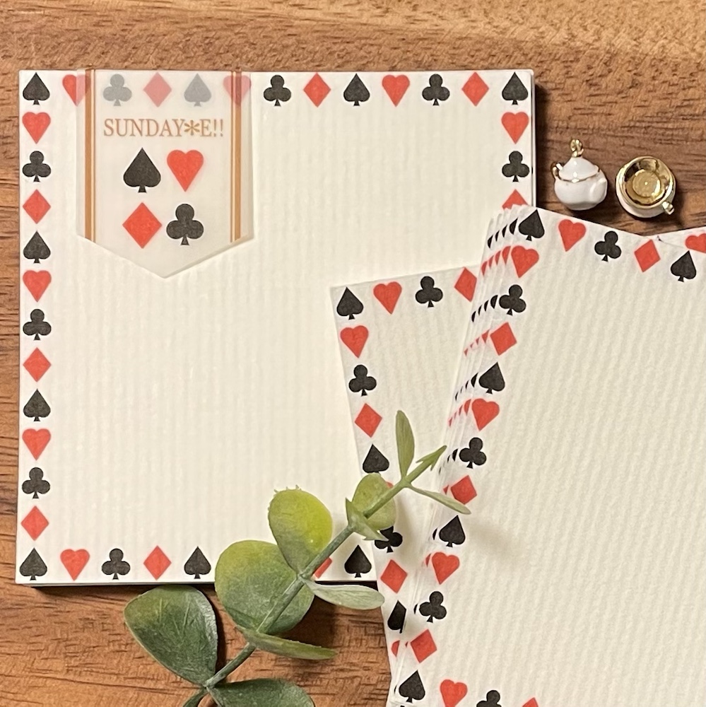 Shop, イベント, 作品 トランプメモ 2023-03-12 / 今日はクリマに向けて在庫の確認をしていました。2019年が最後のイベント出展でして、そこからはネット販売中心だったのでイベント用の在庫が果たしていくつあるのか、いくつ作る必要があるのかを洗い出していました。 そこで気づいたアイテムの一つがトランプメモです。数日前の投稿でトランプメモもクリマに持っていく予定だと書いていて蓋を開けたら在庫わずか。というアイテムが他にも何点かあったので補充を作りつつイベント準備を進めていきます。