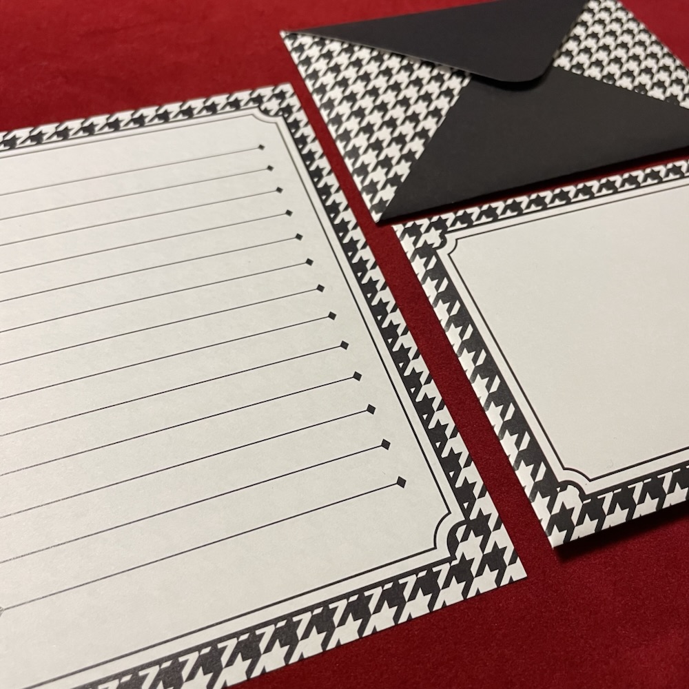 さてさて、今日の写真は【千鳥格子柄黒ミニレターセット】です。