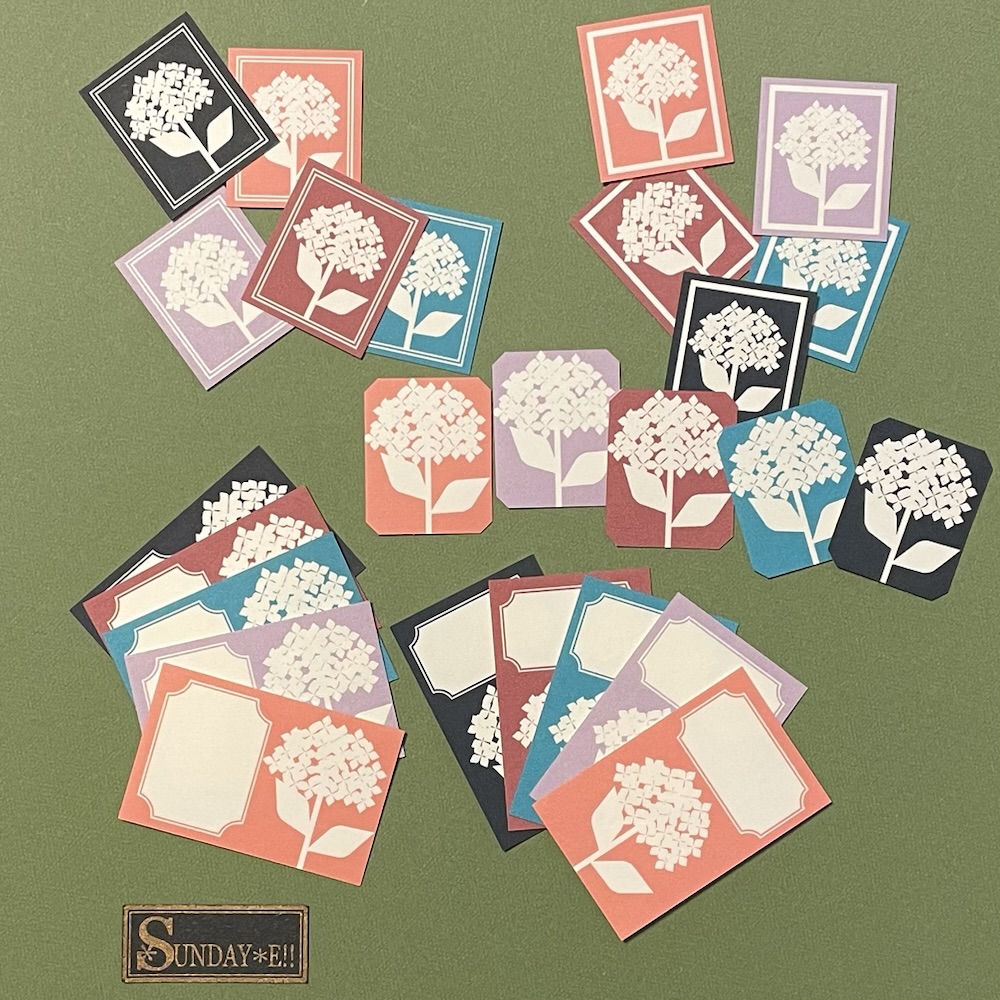 Shop, 作品 在庫補充しました 2026-03-11 / 【あじさいフレークシール】 少ないですがminne、creema分の在庫を追加しました。 5種類×5色の合計25枚入ったあじさいのフレークシール。 専用のケースに入れて販売しています。 全て並べた写真が撮れるのは制作の時だけなので、ちょっと作業を中断して撮ってみました。