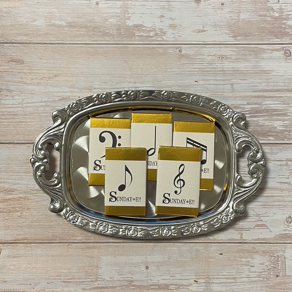 制作中の話 撮影小物 2026-02-23 / 写真撮影の時に使うお菓子。 お菓子のパッケージデザインを作ることが気分転換になったりします。 今回のは音符チョコ…に見えますかね? そうだったらいいな。 結構前に作ったもので、写真撮影の時に置いたりしています。 サーカス、りんご、シルクハット、トランプ 色々な柄を使ったお菓子のパッケージも作ってみたいなと思っているので、いつかの写真で出てくるかもしれません🤭
