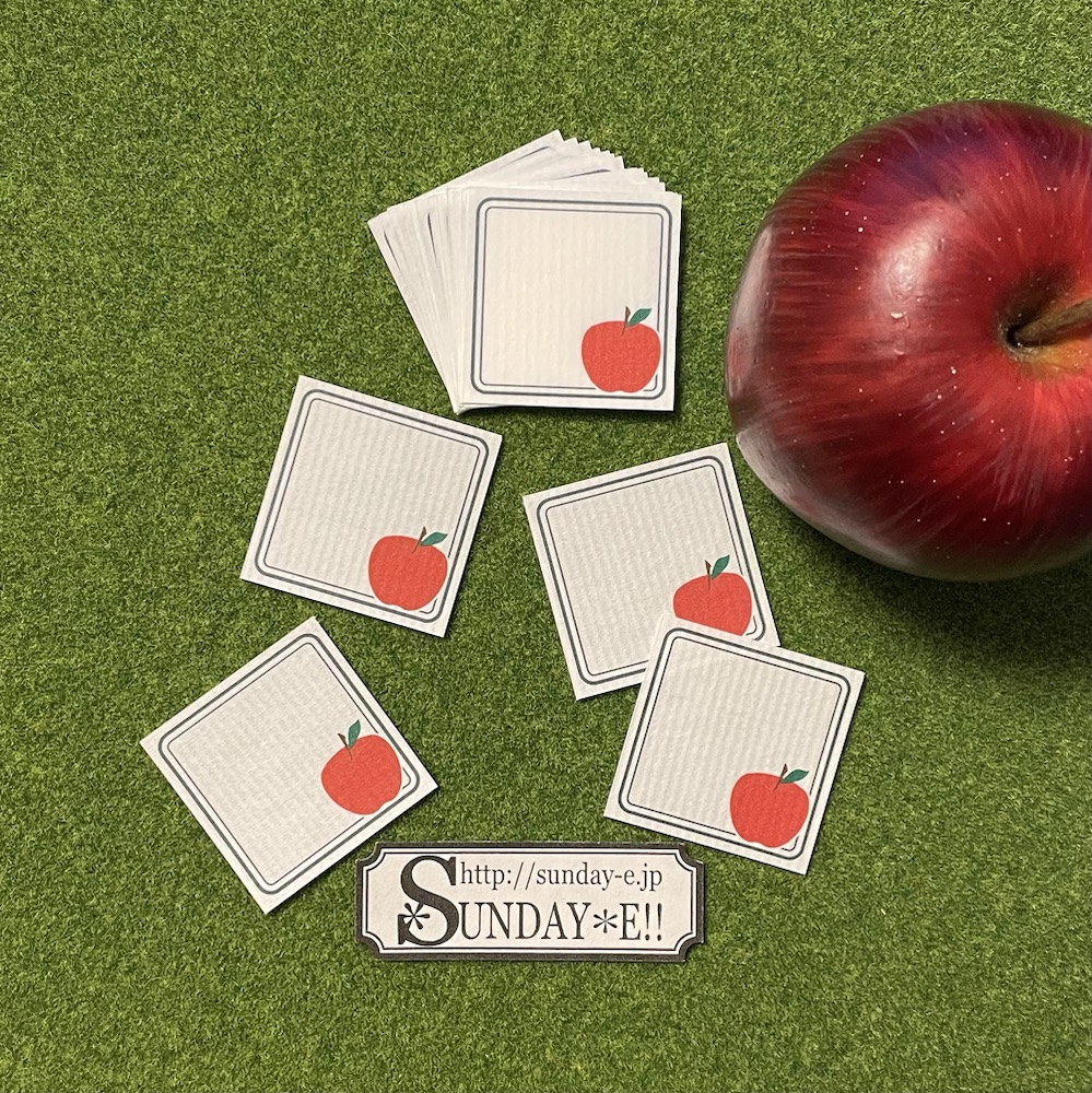作品 次はりんご柄 2024-06-02 / 【紙のミニラベル】りんご柄紙のミニラベルは12種類ありまして、今回はりんご柄のご紹介です。こちらの紙のラベルのデザインは「スタンプを押した後のようになるような感じ」にしています。りんご柄も可愛い感じにできていますよ。色々と使えるように30枚入りになっています。お菓子を入れた袋にクリップでとめるのが一番簡単かもしれません。手帳デコにもおススメです。
