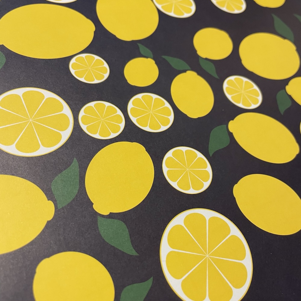 作品 良い刷り上がり 2026-03-26 / 【レモンの紙袋(仮)】 新作が刷り上がりました。 イメージは夜のレモン。 レモンの色が思っていた通りの色で出るのかドキドキしていました。 届いたのを見たら思っていた通りの黄色だったので嬉しくてアップしました🙌 ここから紙袋に加工していきます。 作るのが楽しみです✨