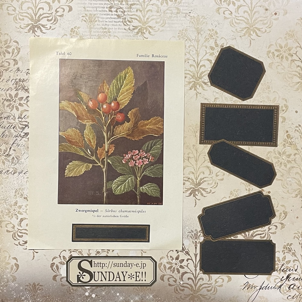 その紙に金色のインクで印刷して、色々な形にカットした紙のラベル。