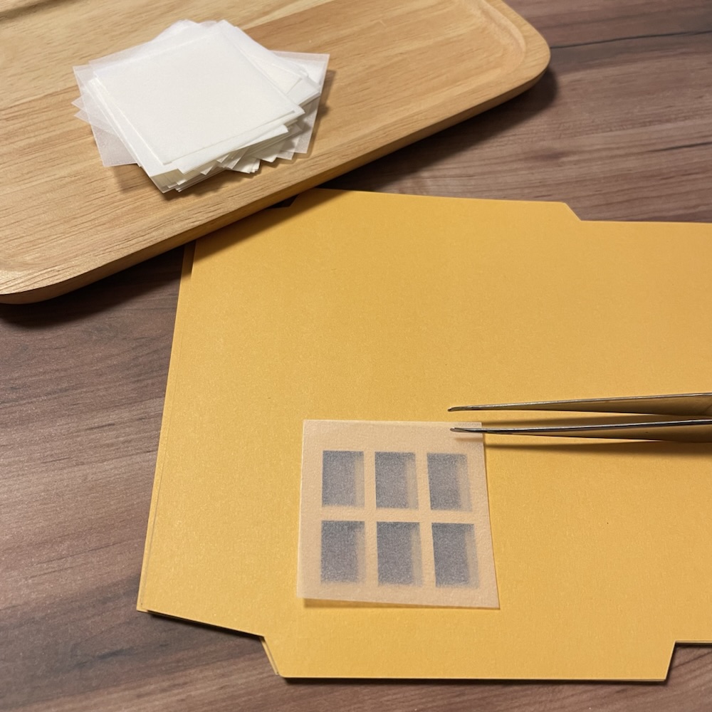 今回作っているのは窓灯のミニレターセットの窓を貼っているところです。