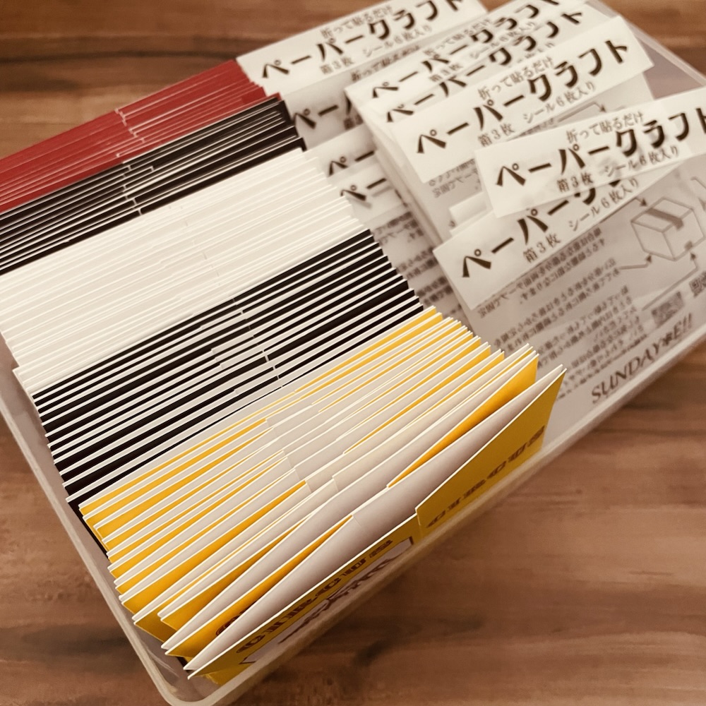 ペーパークラフトの見本をつぶさないように運ぶための箱どうしようかな?という投稿をした後に100円ショップへ行って見かけたこのプラ箱!