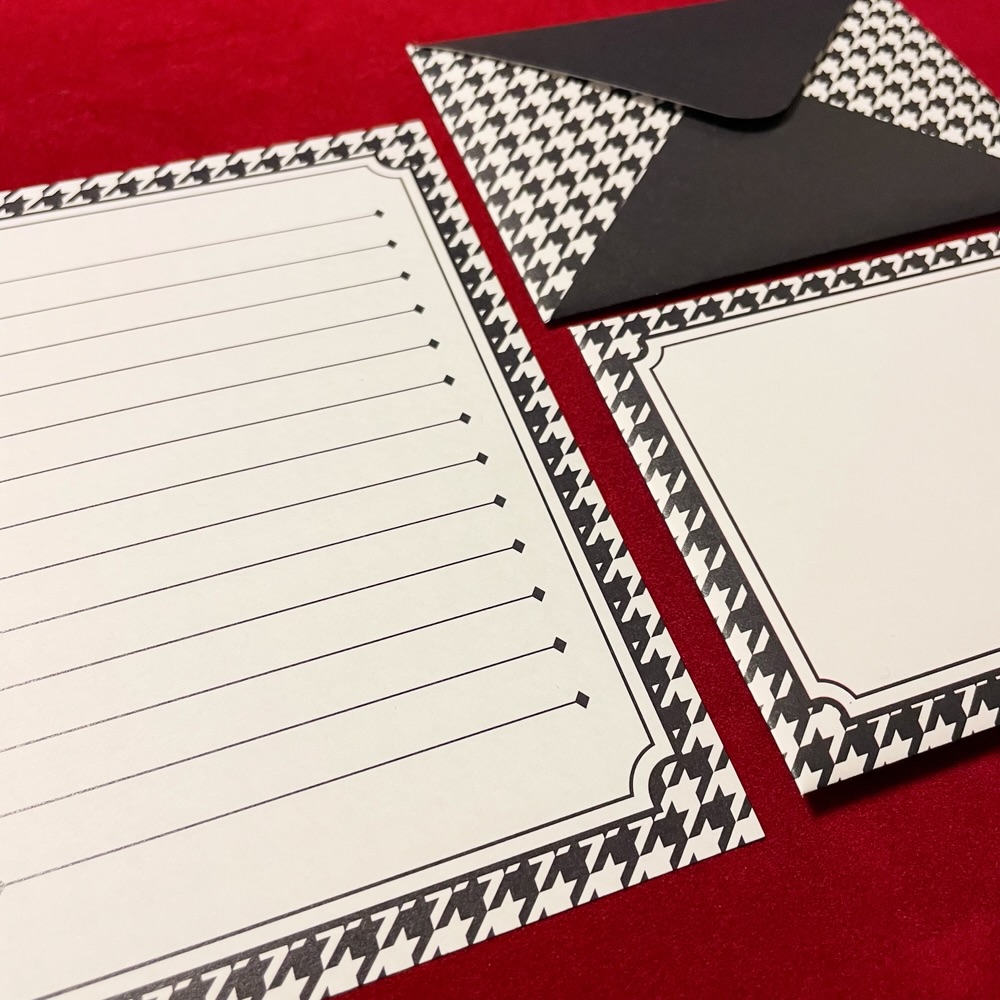 写真の千鳥格子柄のミニレターセットはminne、creemaで販売しています。