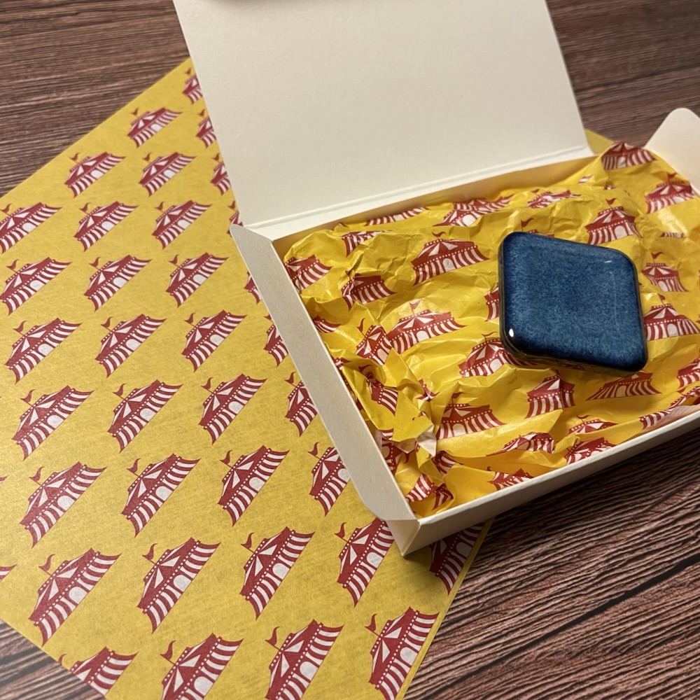 実際に使ってみて、確かにもったいないのというのはあるんですが、箱を開けてみて可愛い緩衝材だったらそれはそれで印象に残るラッピングになるんじゃないかな?とも思いました。中に入っているのは秋にアンティークマーケットに行った時に購入したタイルです。