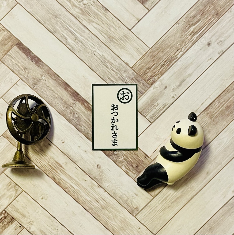 今日の写真は【原稿用紙柄のシール】にひらがなスタンプを押してみました。
